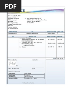 Contoh Invois Bagi Perkhidmatan Terjemahan Pdf Business Documents Accounting